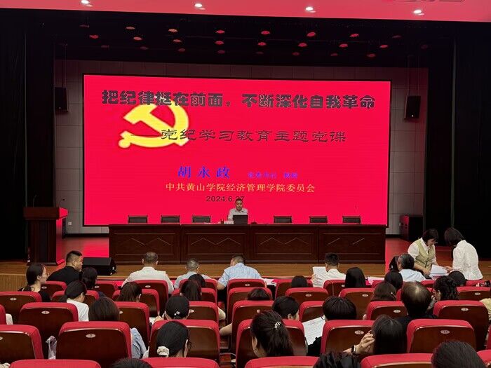 6月27日下午,taptap点点官方网站党委书记胡永政教授在报告厅给taptap点点官方网站学生第一党支部上党课,党课主题为“把纪律挺在前面,不断深化自我革命”,学生第一党支部全体学生党员参加。