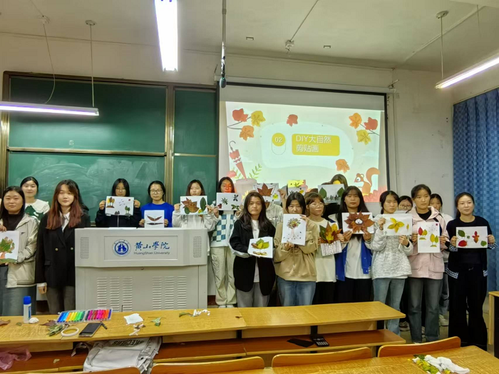 活动伊始,主持人带领大家进行“你画我猜”小游戏活跃现场气氛,拉近彼此距离。随后分发了树叶和工具,参与者们精心挑选树叶,用胶水、画笔等工具将它们组合成一幅幅独特的作品。活动现场气氛热烈,参与者们热情高涨。在活动过程中,大家充分发挥想象力,有的描绘宁静的自然风景,有的展现内心的梦想与希望,同学们仿佛找到了与自己内心对话的桥梁,将那些平时难以言说的情绪通过树叶画展现出来。活动最后,大家共同评选出觉得最好的几幅作品,并一起合影留念。